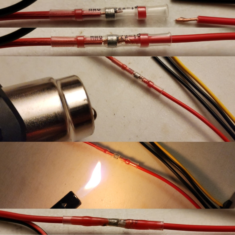 Note: Solder Seal Wire Connectors make connecting two pre-stripped wires together simple with any high heat source (heat gun recommended, but a lighter flame will work as well; with careful slow application)