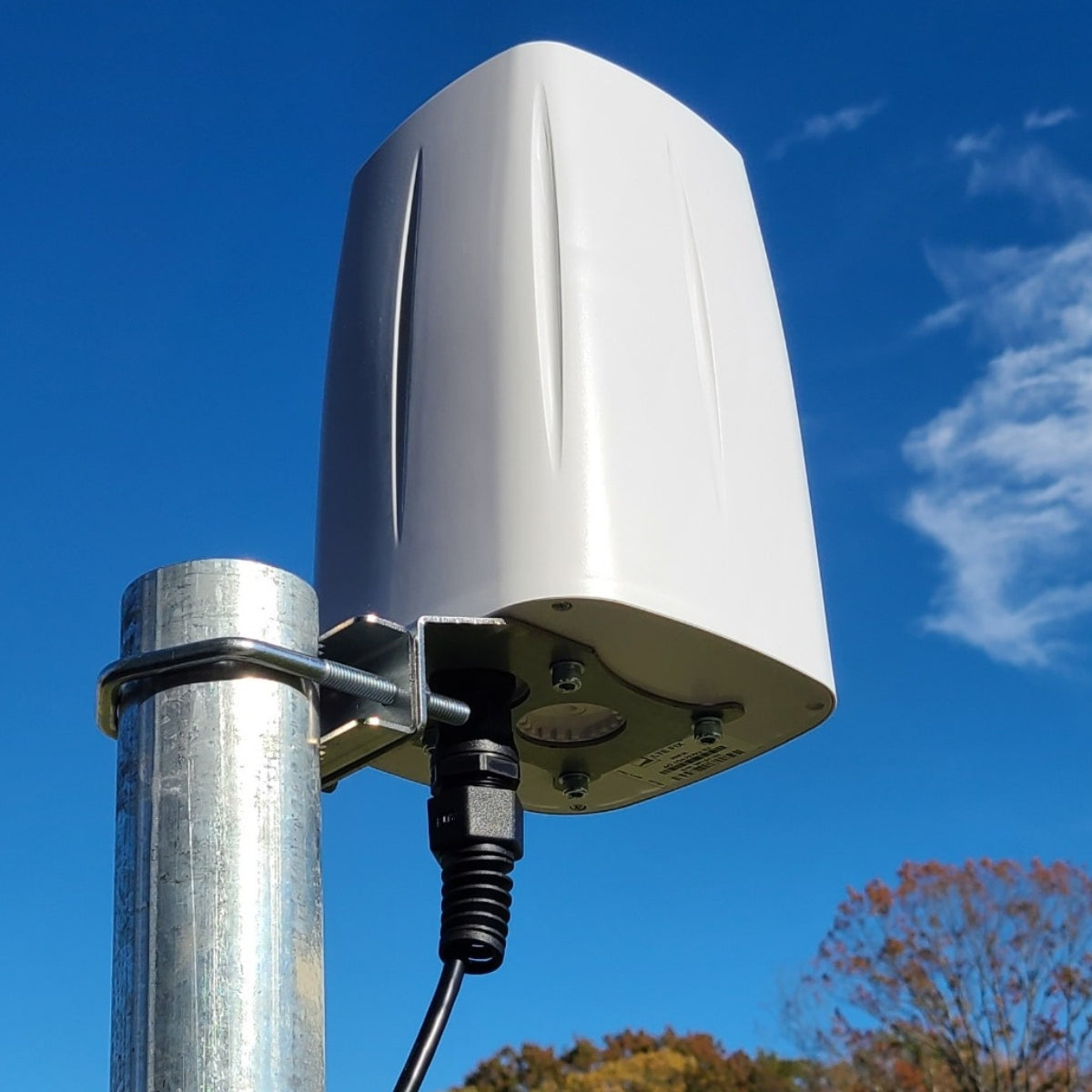 The antenna component and circuitry are integrated within a top quality outdoor weatherproof enclosure system. (6.3" x 6.3" x 9.45")
