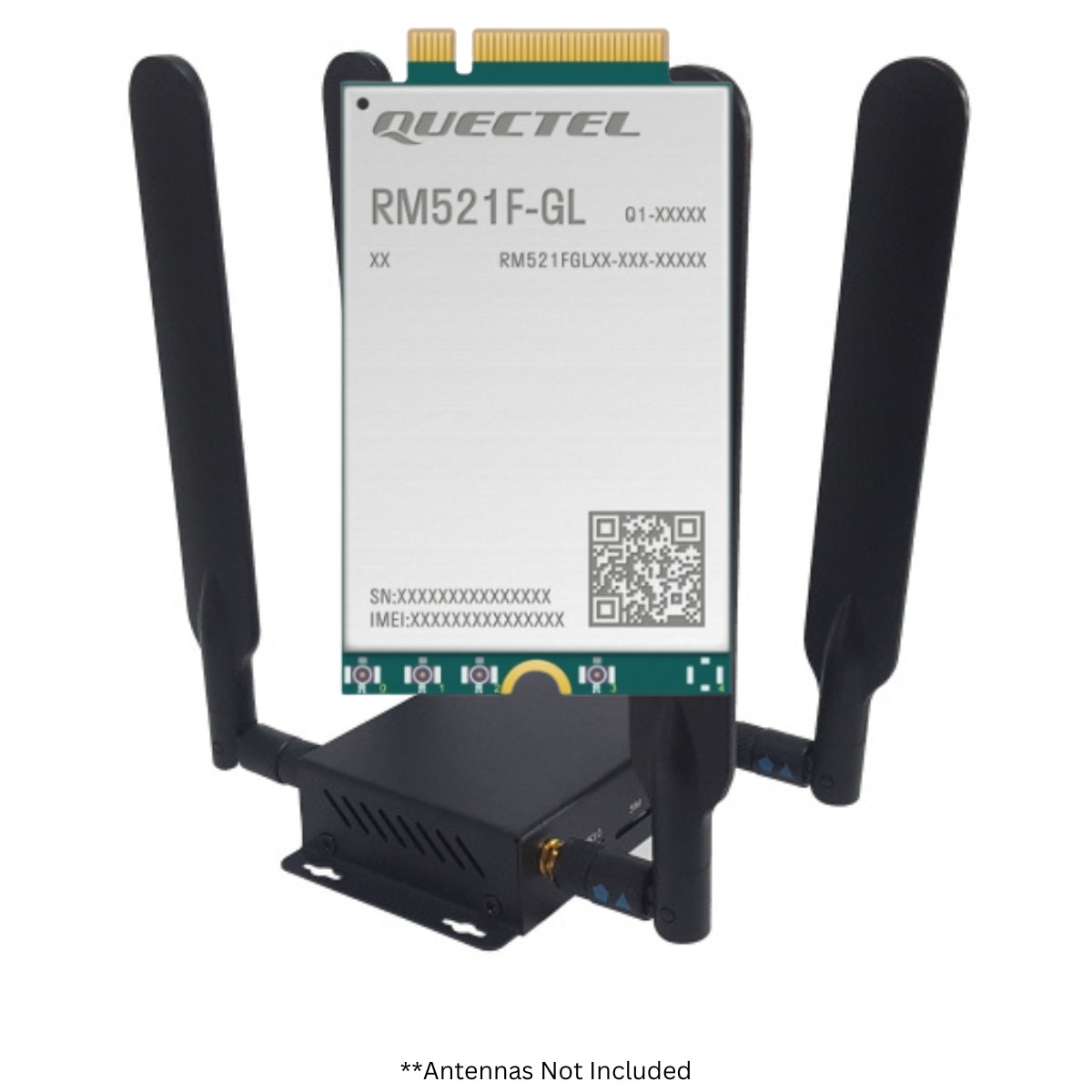 The enclosure may be used on a desktop or mounted to a wall. It uses the industry standard SMA Male 4G LTE antennas (purchased separately, see antenna options below) and includes four MHF4 to SMA female bulkhead (1.13 cables) pigtails (to connect the M.2 modem to the antennas).